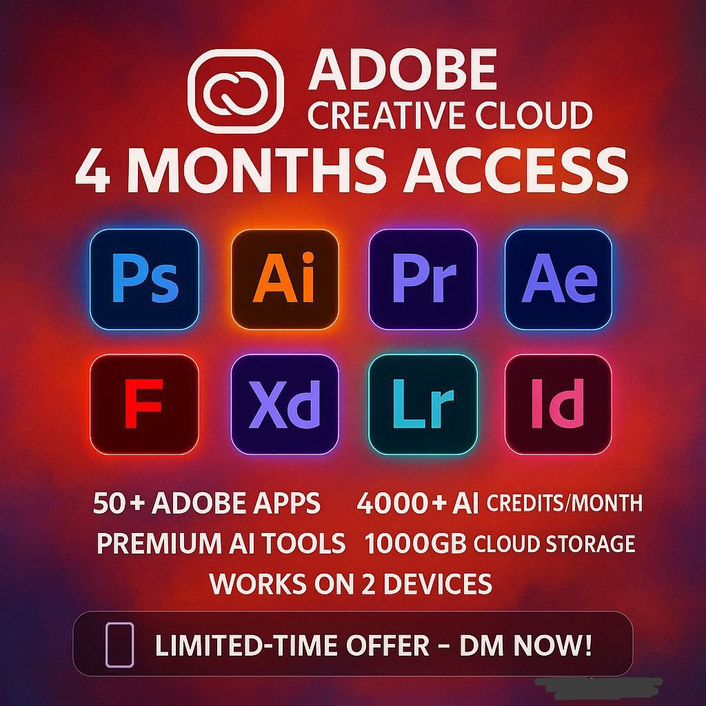 *🎨 🔥 ADOBE CREATIVE CLOUD – 4 / 12 MONTHS 🔥*